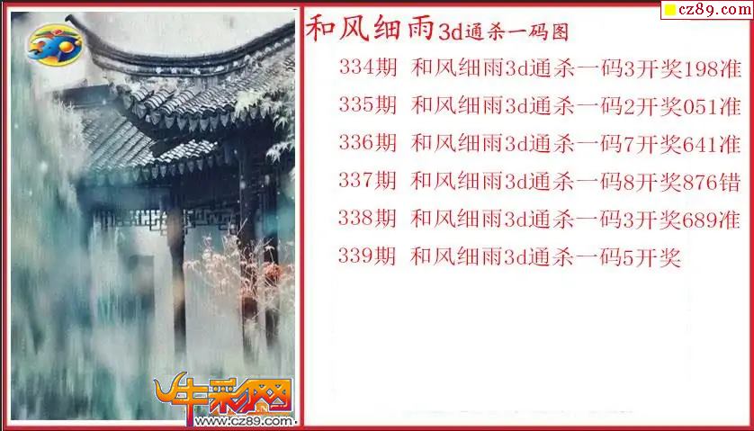 25年339期3d 和风细雨通杀一码图